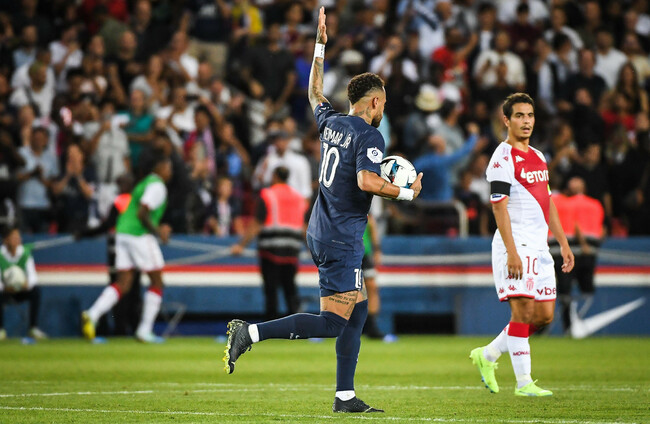 NEYMAR SCORED FROM the penalty spot but Paris Saint-Germain’s perfect start to the French campaign was ended in a 1-1 draw with Monaco on Sunday.