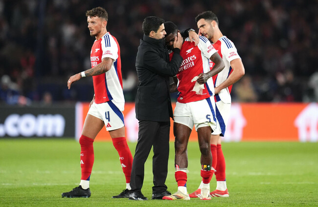 Arsenal Champions League Declan Rice limp exit Mikel Arteta PSG Soccer