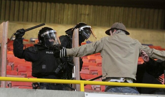 SOME SHAMROCK ROVERS fans clashed with PSNI officers tonight at Windsor Park during the Airtricity League side’s game with Linfield at Windsor Park.