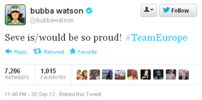 It wasn’t the ending America expected but in their moment of defeat, Bubba Watson took time to pay tribute to a man whose presence was felt throughout Medinah, the late Seve Ballesteros.
