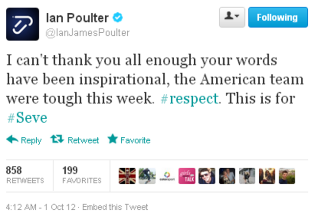 Poulter’s win against Webb Simpson ended a perfect week in which the Englishman won four points from his four games. He looks like he enjoyed himself: