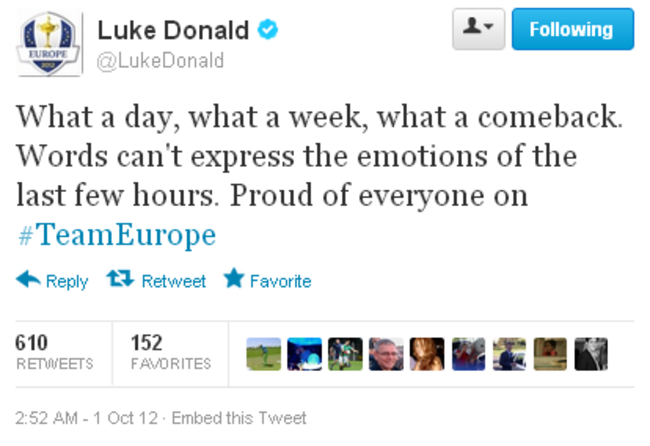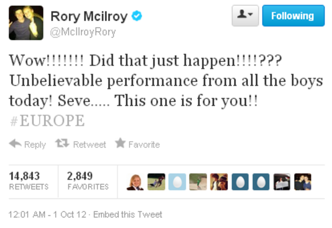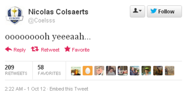 Martin Kaymer’s win against Steve Stricker guaranteed Europe’s all-important 14th point and it wasn’t long before the smartphones were out and the celebratory tweets started to flood in.