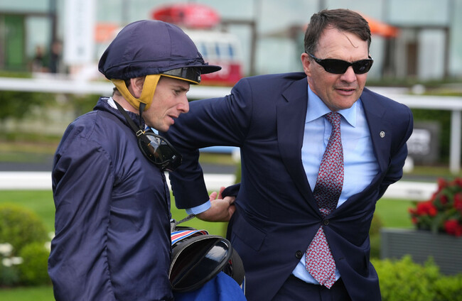 O’Brien ran a pacemaker in Hans Andersen but despite him sporting first-time blinkers, City Of Troy broke quicker and Ryan Moore found himself in front – and there he stayed, winning by a length from Calandagan.
