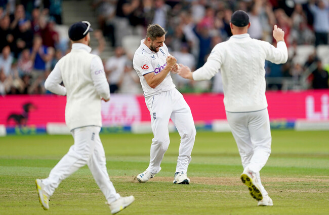 And he struck again when Mitchell Starc skyed the ball for Harry Brook to take a fine diving catch.