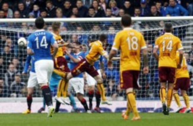 The defender directed Nicky Law’s corner into the net from six yards, but Rangers still face an uphill battle at Fir Park on Sunday to earn promotion back to the top flight, three years after they were sent to the third tier.