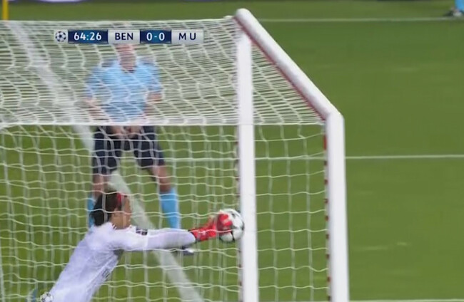 Svilar, who became the youngest goalkeeper to start a Champions League game aged just 18 years and 52 days, caught the ball but in doing so stepped backwards over his line to gift United the lead.