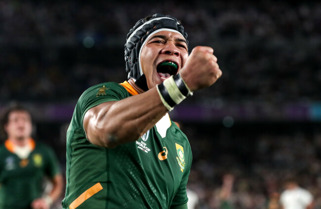 Instead he pointed to the presence of so many of his players abroad, including Leicester’s Jasper Wiese, Sale’s duo Lood de Jager and Faf de Klerk, Toulouse winger, Cheslin Kolbe and of course, Munster’s centre, Damian de Allende – each of whom have profited from competitive action.