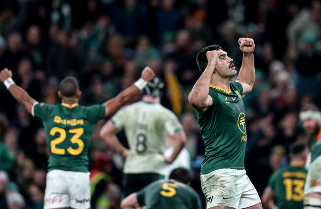 RASSIE ERASMUS HAS experienced a series of deeply satisfying wins over the last few years, but you sensed tonight’s defeat of Ireland in Dublin was right up there for the South Africa boss.