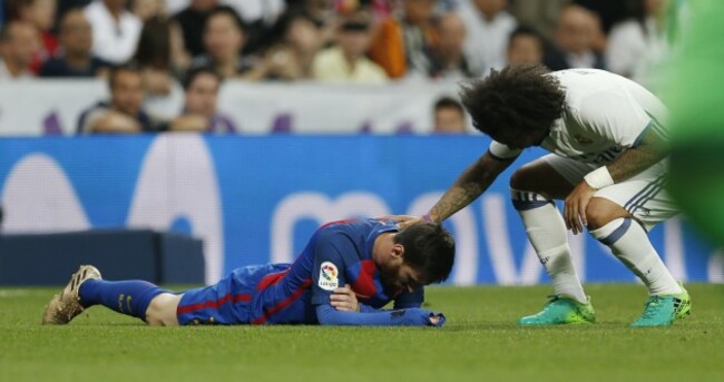 Marcelo just — accidentally – smashed an elbow into Messi and he’s bleeding from his mouth. He’s yet to get back on.