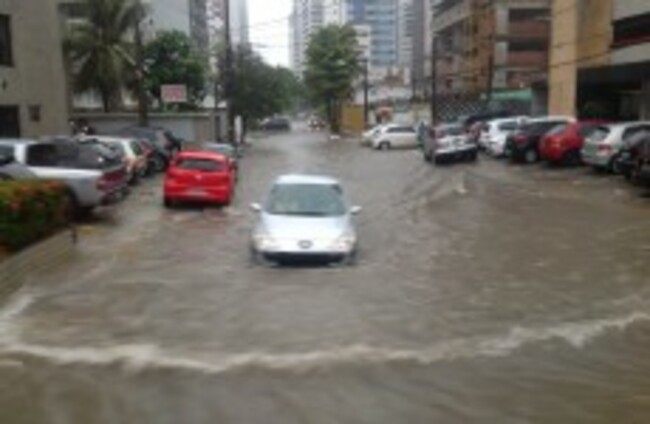 Having turned off Avenida Getulio Vargas onto the flooded Avenida Recife we were stuck. With abandoned vehicles in front of us and traffic building behind, we were effectively stranded on an island.