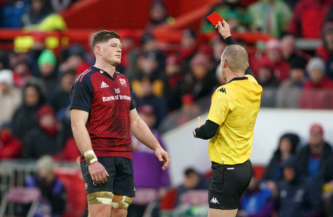 “My gut feeling is no. Discipline and red cards have always been part of the game. The Munster game at the weekend: if Jack O’Donoghue doesn’t give away a red card and Munster win that game by 40 points, which they’re coasting to do, and he gets disciplined afterwards . . . it takes a bit of the jeopardy out of the game. …. Surely the idea of being given a red card on the day and costing your teammates on the day should be a bigger factor than being dealt with on a Tuesday or Wednesday, and you’ve got the win.”
