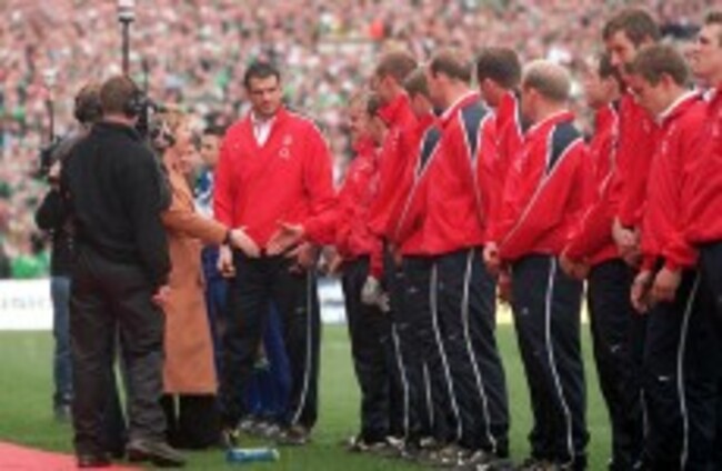 The English team, led by Martin Johnson, took up residence on Ireland’s side of the red carpet and refused to budge. The Irish team were forced to line-up on the grass.