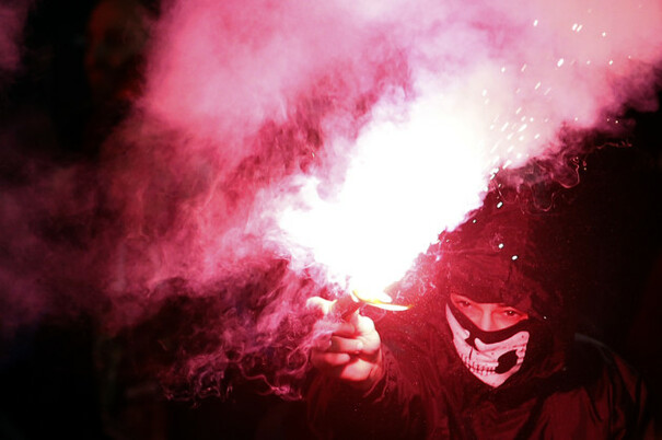 Smoke from flares made it impossible to see clearly and the referee had to suspend play after just thirty seconds of action.