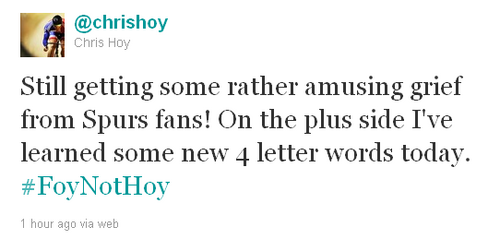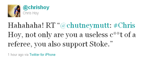 Abuse Chris Foy Chris Hoy FoyNotHoy Harry Redknapp Referee Stoke City Tottenham Hotspur Tweet twits Twitter