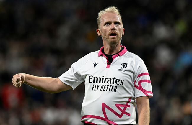 His most recent game involving Ireland was their 59-16 pool-stage win over Tonga, while he also refereed their 17-13 World Cup warm-up win against Samoa in August, and was in charge for Ireland’s 32-19 win over France during this year’s Six Nations.