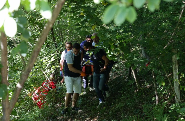 Race favourite Evenepoel lost control on the steep descent from the Colma di Sormano that leads to the race finish at Lake Como, hitting a bridge wall and plunging six metres into a ravine.
