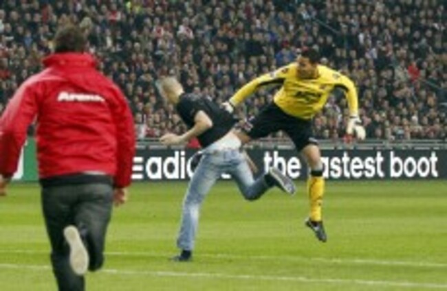 The original tie was abandoned on 21 December after Alkmaar ‘keeper, Esteban Alvarado, was sent off for retaliating against a pitch invader who attacked him from behind. Here’s that video again.