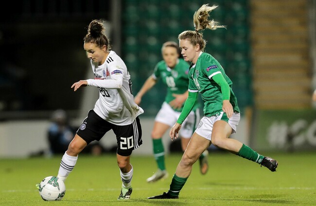 Lina Magull finds far too much space in midfield ahead of the Irish defence, but skews a shot wide.