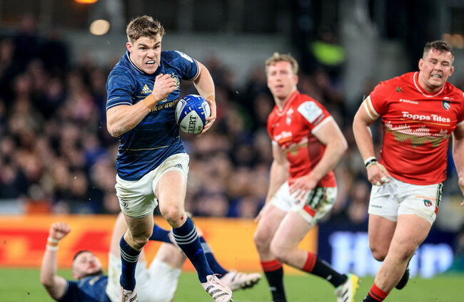 The first arrived in a flash – Ringrose selling a lovely dummy to skip in under the posts. The same player supplied the second 15 minutes later, Jimmy O’Brien slipping inside two defenders before Ringrose found himself under the posts again – Leicester failing to get a hand on a Leinster player as the province turned a scrum to a score on first phase.