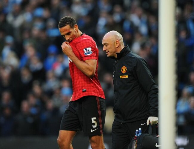 The game was marred by an incident which saw United defender Ferdinand struck above the eye by coin thrown from the crowd before a Manchester City fan confronted the same player and had to be restrained by City goalkeeper Joe Hart.