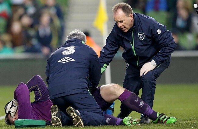 REPUBLIC OF IRELAND goalkeeper Rob Elliot could be a major doubt for this summer’s European Championship after he was forced off during the first half of tonight’s friendly against Slovakia at the Aviva Stadium.