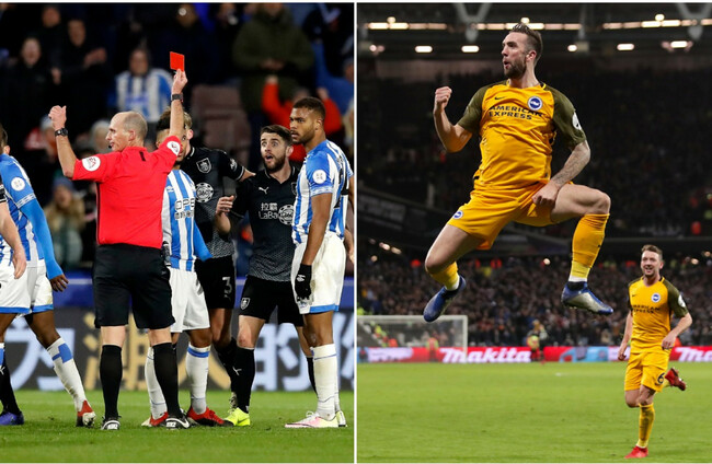 Brady was shown a red card for a late tackle towards the end of Burnley’s 2-1 victory away to Huddersfield while Duffy hit the net for Brighton but they had to settle for a 2-2 draw as West Ham pegged them back.