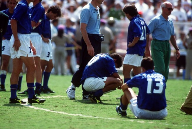 They would always lose in shootouts up until Euro 2000 and Francesco Totti’s chip against Holland. So, in many ways, 1994 was a repeat of four years previous when Italy had also been eliminated on penalties. And 1990 was much more traumatic. But 1994 did create some heroes in defeat. You’ve got Baresi as the tragic hero and Baggio, kind of.