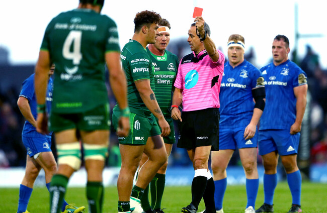 The New Zealander was introduced as a 68th minute replacement in Saturday’s loss to Leinster at the Sportsground and was red carded in the 69th minute after referee John Lacey viewed the offence on a TMO referral.