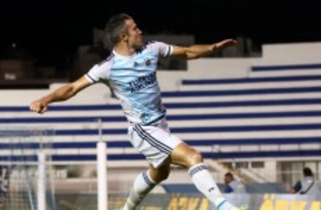 ROBIN VAN PERSIE opened his Fenerbahce account with a dramatic injury-time winner in his sides’ Europa League first leg play-off against Atromitos.