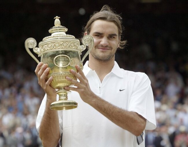 A scraggly-bearded Federer wins Wimbledon in ’03. (©INPHO/Getty Images)