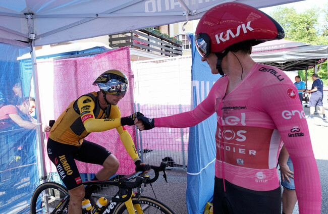 Today, Ineos Grenadiers leader Thomas was already trailing by 16 seconds when Roglic suffered a mechanical problem, which he dealt with only for team mechanics to waste time demanding he switch bikes.