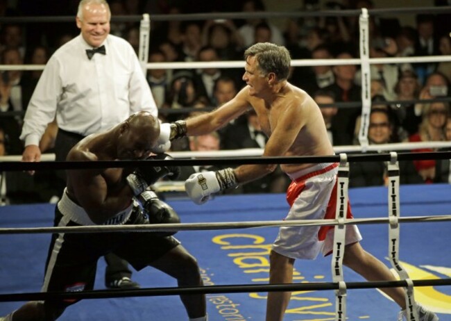 Here's 68-year-old Mitt Romney 'knocking down' former world champ Evander Holyfield
