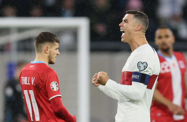 RONALDO MARKED HIS record-breaking 197th international appearance in midweek with two goals against Liechtenstein and he repeated the trick as Portugal thumped Luxembourg 6-0.
