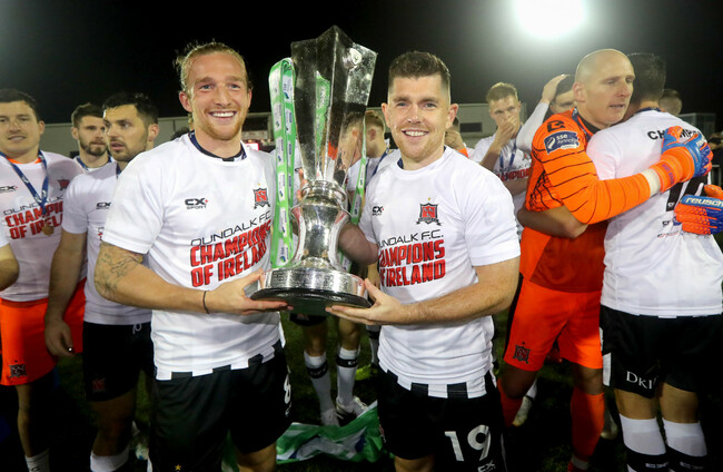 Murray and John Mountney celebrate Dundalk's title win. Morgan Treacy / INPHO