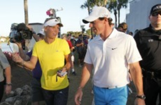 Rory McIlroy walks with his fiancee, tennis player Caroline Wozniacki, after finishing his third round at the Honda Classic AP/Press Association Images