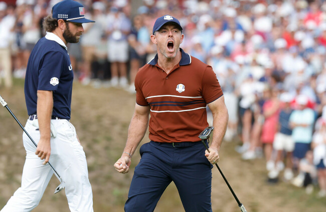 RORY MCILROY AND Shane Lowry have secured their first full Ryder Cup point, defying the taunts to keep Europe’s bid on track at Bethpage Black on Saturday.