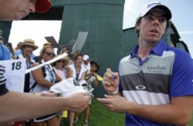 Rory McIlroy signs autographs during a practice round for the PGA Championship golf tournament on the Ocean Course of the Kiawah Island GC. Evan Vucci/AP/Press Association Images