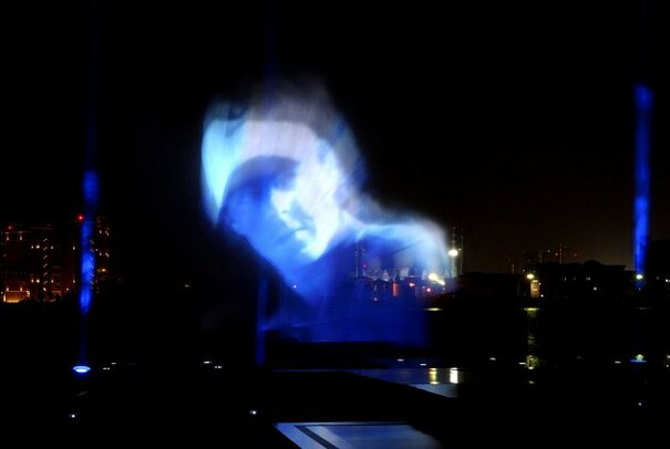 The image of golf world number one Rory McIlroy is projected on water, after he has been unveiled as a new Brand Ambassador for Nike