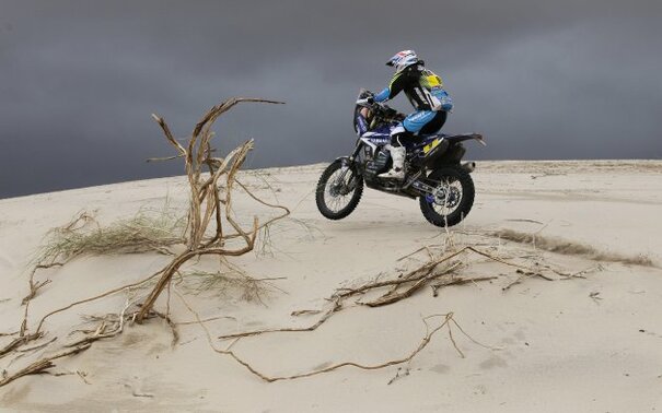 Yamaha rider Olivier Pain of France races across the dunes during the 11th stage of the 2013 Dakar Rally