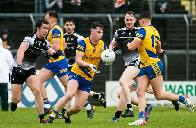 Sligo threatened early on, but a red card for David Phillips ultimately ended the game as a contest. The Rossies led by four points at half time — 0-9 to 0-5 — as a crowd of 6,059 watched on.