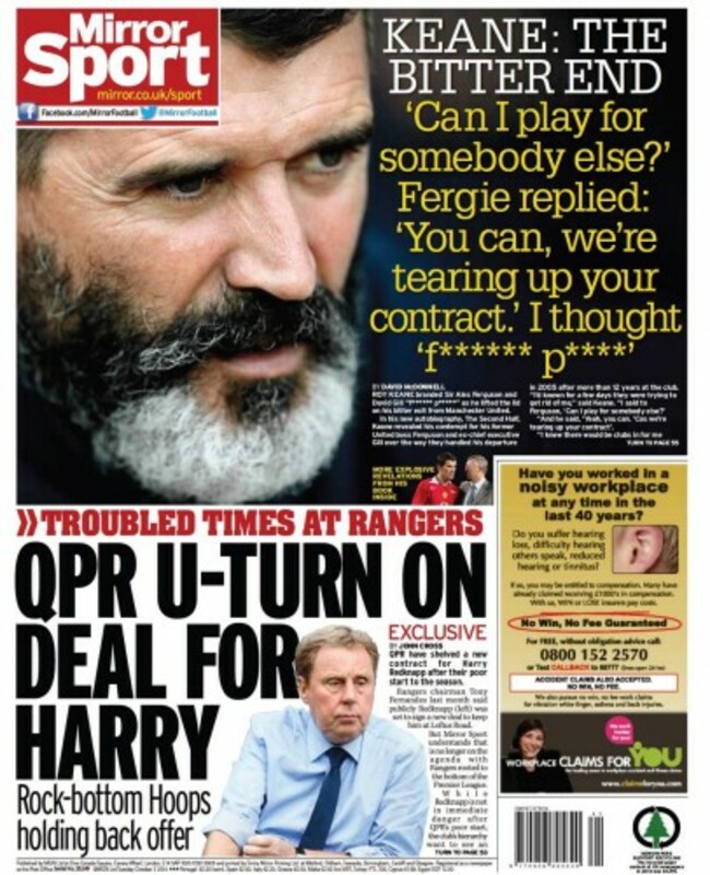 Roy Keane book dominates front and back pages (and a good few in between as well)