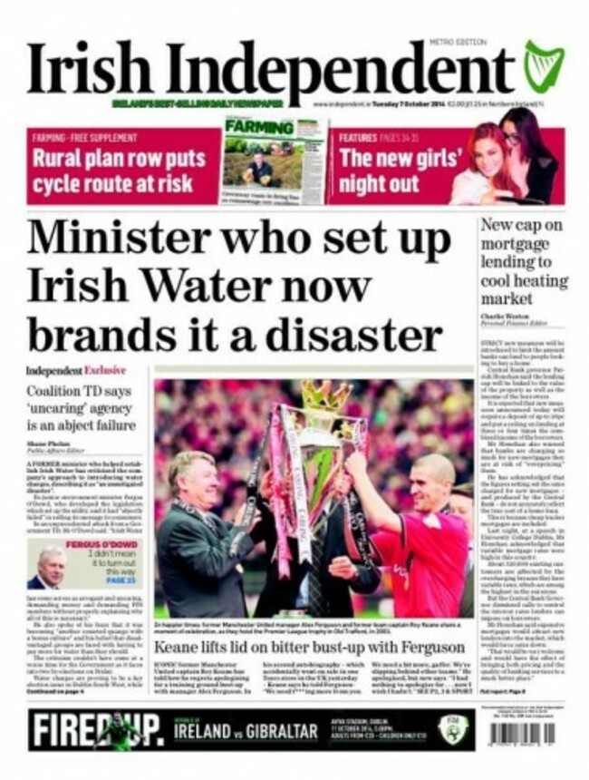 REVELATIONS FROM ROY Keane’s latest autobiography dominate today’s papers at home and in the UK.