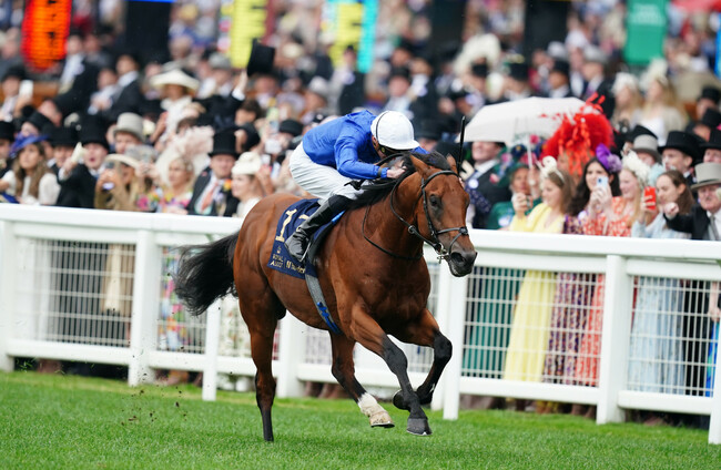 NAVAL CROWN had to settle for second-best behind his Charlie Appleby-trained stablemate Creative Force in last season’s Jersey Stakes – but he avenged that defeat in style as he powered up the stands rail at odds of 33-1 to claim the Platinum Jubilee Stakes.