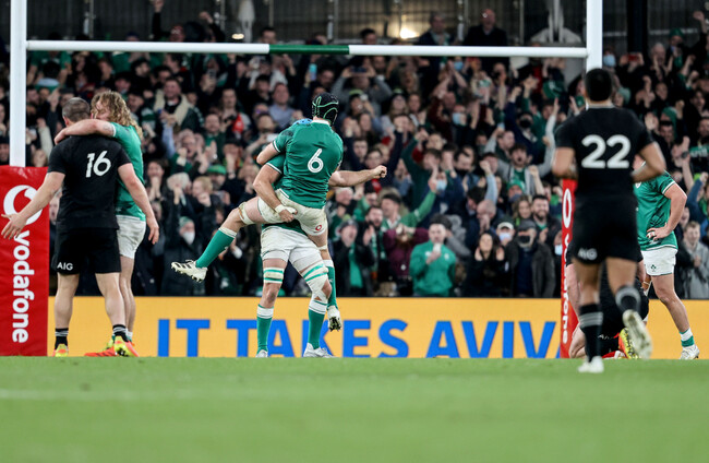 Caelan Doris celebrating Ireland's victory over New Zealand. Dan Sheridan/INPHO