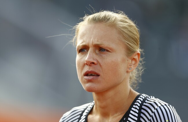 Russian doping whistleblower Yuliya Stepanova who runs under a neutral flag prepares a women's 800m heat during the European Athletics Championships in Amsterdam. Matthias Schrader