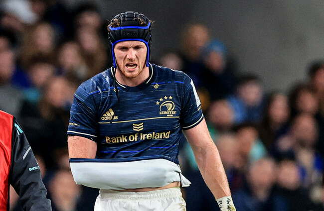 'Ryan Baird injured his shoulder in the first half against Leicester Tigers and will be unavailable for a few weeks,' a Leinster statement reads. Dan Sheridan/INPHO