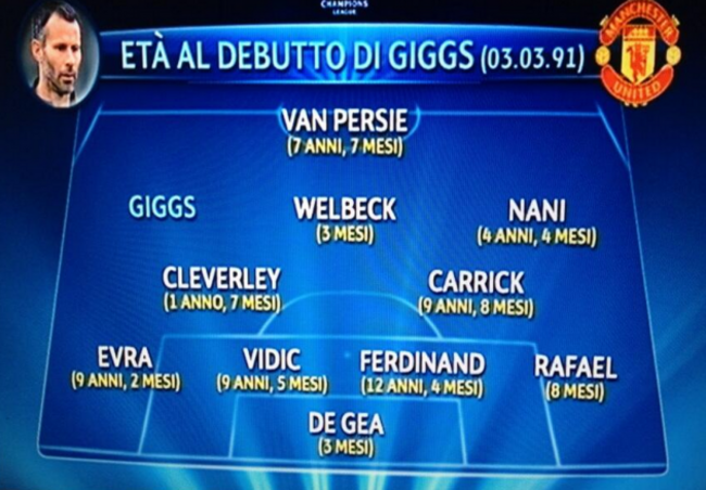 And in tribute to the star, this graphic has been created – noting the age of each of his United teammates playing this evening, when the Welshman made his debut for the club.