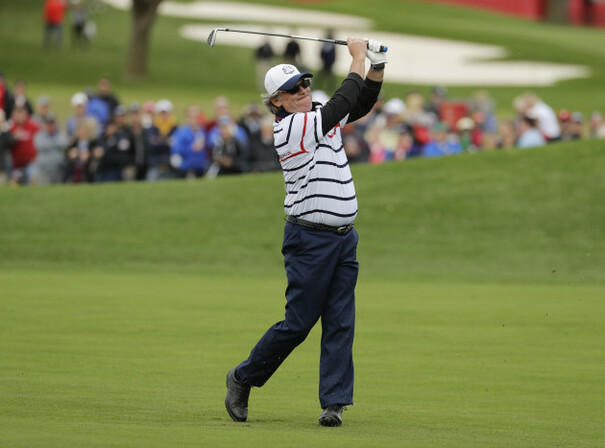 With both America and Europe heading out for practice sessions later in the day, the grandstands at Hazeltine National were packed to greet the 16 celebrities for the second staging of the match.