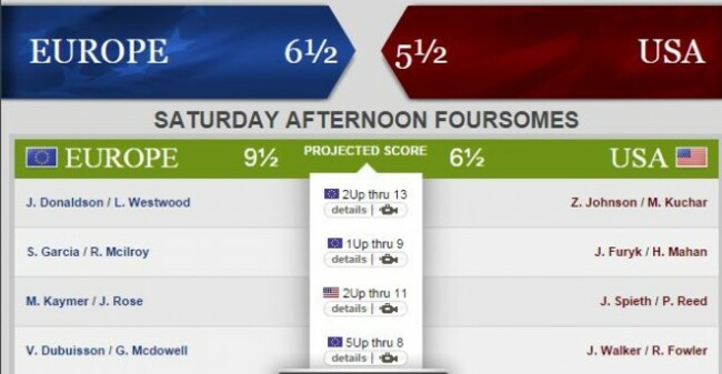 After losing their morning fourball, Lee Westwood and Jamie Donaldson have come out strong in the foursomes and are currently 2-up against Zach Johnson and Matt Kuchar through 12. The European pair have made three birdies so far.