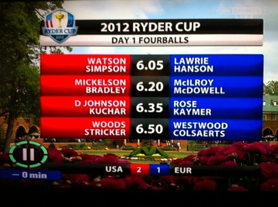• 1335 – Phil Mickelson/Keegan Bradley v Luke Donald/Sergio Garcia